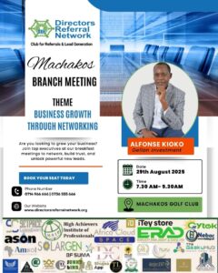 In today’s fast-paced business environment, one truth remains constant: growth happens through connection. For leaders, CEOs, and directors, the ability to build the right networks determines not just survival, but long-term success. This is why the Directors Referral Network (DRN) is proud to host the upcoming Machakos Branch Meeting, scheduled for Friday, 29th August 2025, from 7:30 AM to 9:30 AM at the prestigious Machakos Golf Club.